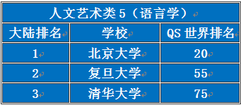QS世界大学学科2013年年度排行榜(前200强)涵盖30个学科,北京大学在其中27个学科中位居世界前列,且在上榜的中国内地高校中位居第一。其中,北京大学的21个学科跻身世界大学学科排名前50强,哲学、现代语言、语言学、化学、材料科学等5个学科位居世界前20强。